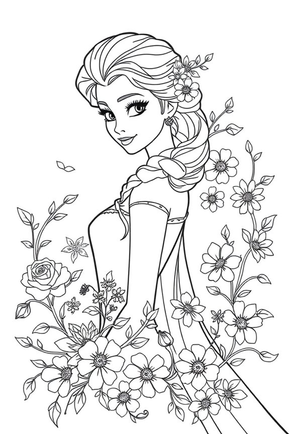 Download and print the free Elsa Floral Accents Coloring Sheet to bring a touch of nature and creativity to your coloring experience!